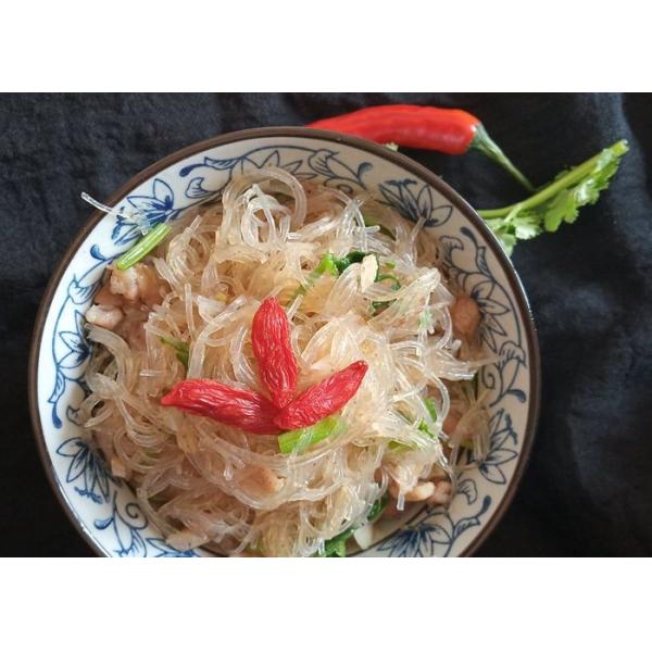 Gluten Free Mung Bean Glass Noodles is made from different grains and beans starch, it is consisted of starch of green mung beans and peas, the quality of vermicelli is determined by the percentage of starch of Mung bean/peas: the more higher percentage of starch of mung bean/peas ,the better of the quality.